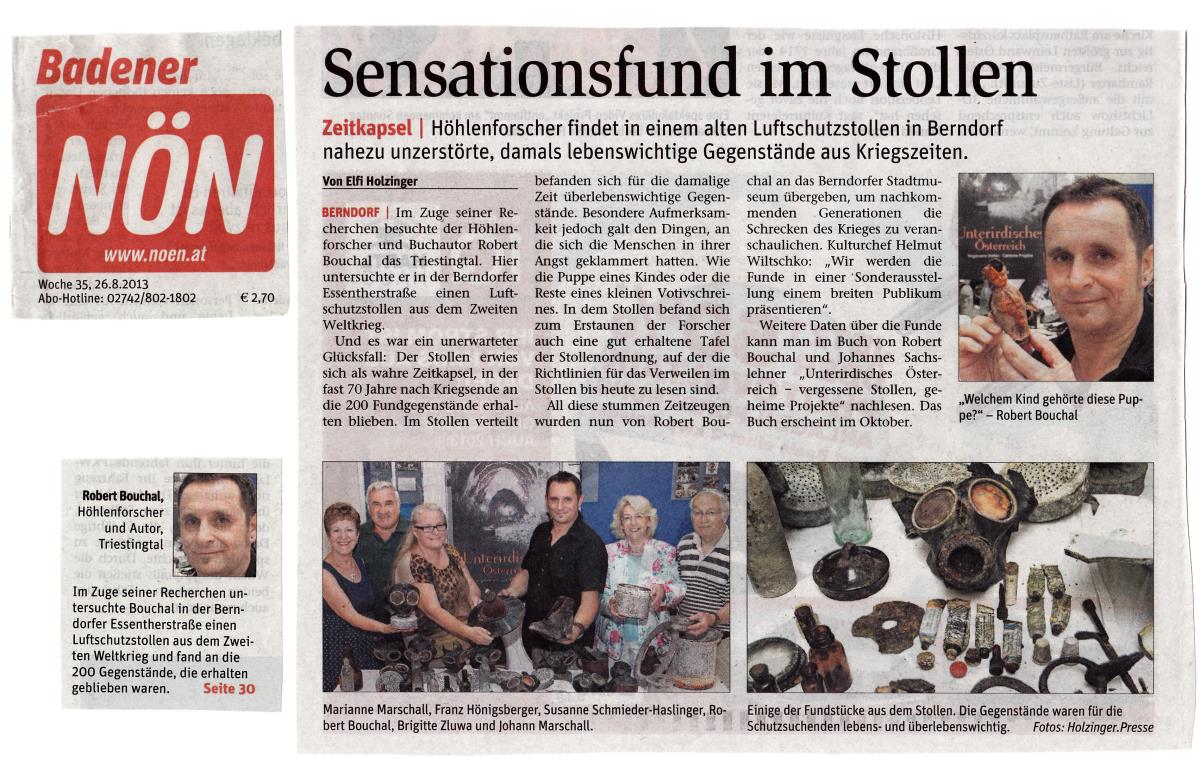 Die bei der Befahrung eines Luftschutzstollens durch den Höhlenforscher Robert Bouchal in Krems aufgefundenen Hinterlassenschaften des letzten Krieges, wurden