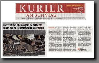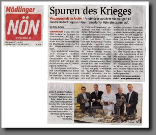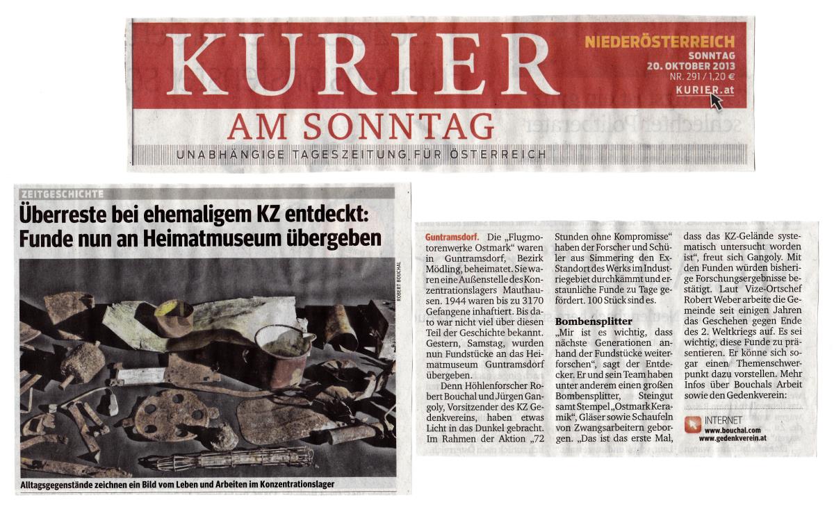 Die im Rahmen einer Reinigungsaktion auf dem Grundstück des KZ Lager Guntramsdorf gefundenen Gegenstände wurden von Robert Bouchal an das Heimatmuseum in Guntramsdorf zur Ausstellung übergeben. Das Lokalfernsehen war dabei.