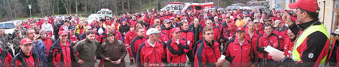 Vom vermisste Mann war am Samstag Abend noch immer keine Spur zu finden. Sonntag es war für diesen Tag eine extrem genaue Geländesuche in der näheren Umgebung des Heimes geplant. Ein Durchstreifen des dichten Unterholzes in der nähe des Heimes erbrachte auch keinen Erfolg. Ein paar Höhlenretter wurden von der Hauptgruppe abgezogen, um einen alten Stollen abzusuchen, in dessen Nähe eine Jacke unbekannter Herkunft gefunden worden war, bevor mit der Suche allerdings so richtig begonnen werden konnte, wurde der Einsatz